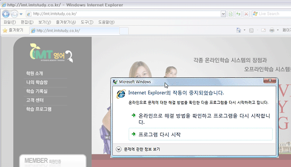 Q4 프로그램 실행 시 “Internet Explorer의 작동이 중지되었습니다”로 표시되고 브라우저가 다시 시작!