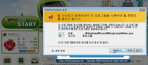 Q13 [e-Learning START] 하고 프로그램 화면에 배경만 표시되고 아무것도 표시 안되요.