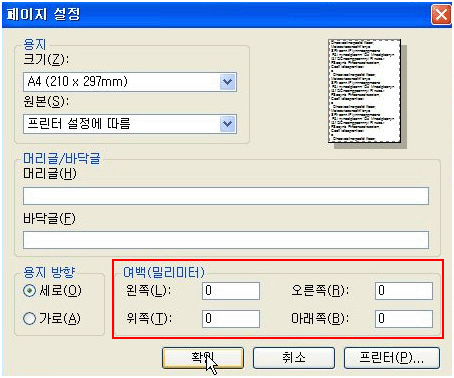Q16 인쇄할 때 아무 것도 인쇄되지 않은 종이가 3~4장 더 나와요.