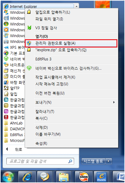 Q14 Vista/Window 7에서 프로그램 실행 후 최신버전입니다만 뜨고 프로그램이 나오지 않아요.
